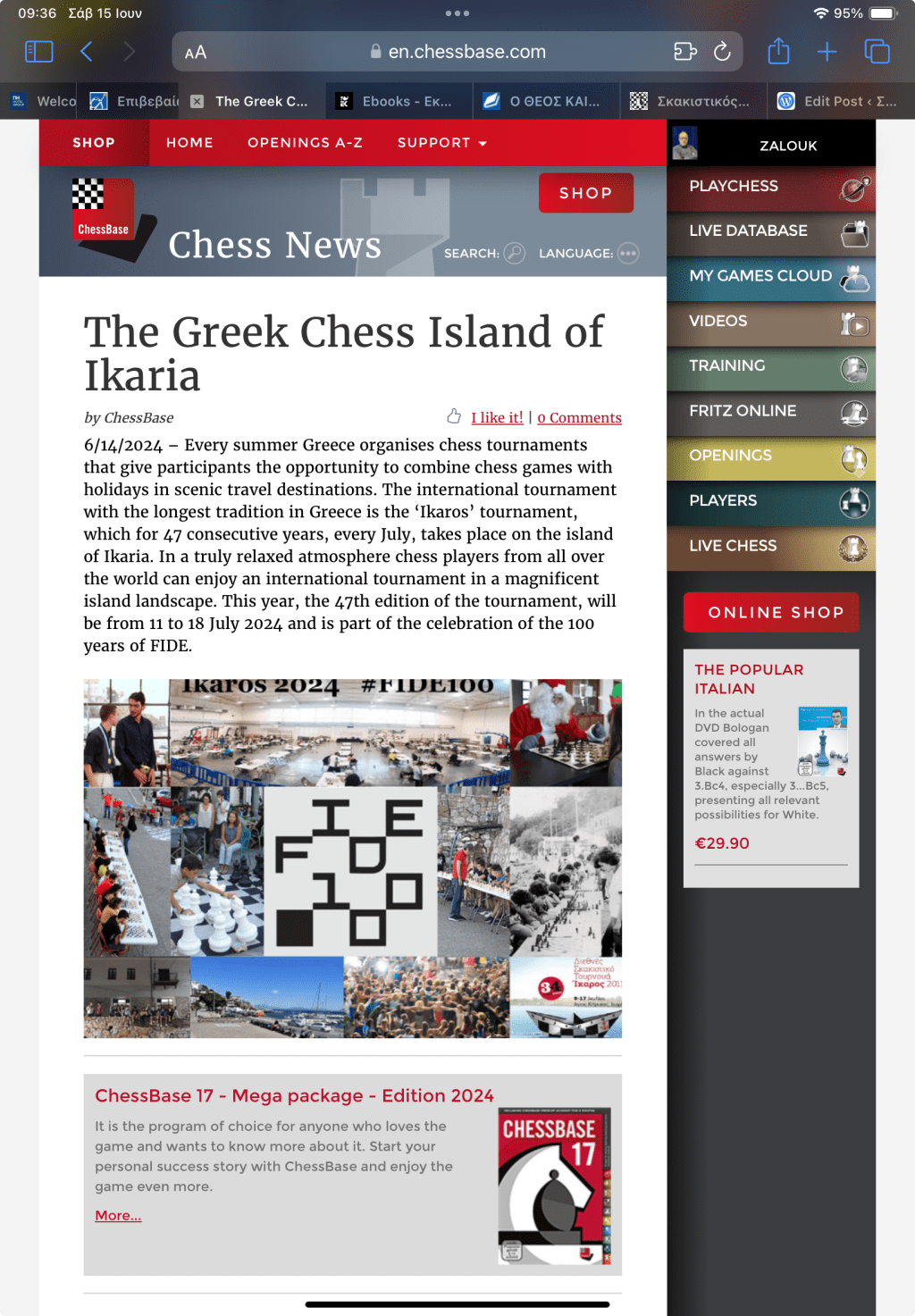 Στο μεγαλύτερο σκακιστικό site Chessbase, δημοσιεύτηκε το άρθρο του Λουκά Ζαχείλα για τα τουρνουά ‘Ικαρος´. Συνοδεύεται από πολύ ενδιαφέρουσα ανάλυση παρτίδων του GM Στράτου Γρίβα. Οι παρτίδες παίχτηκαν το 1995 και το 1997 στην Ικαρία. Το πλήρες άρθρο: https://en.chessbase.com/post/the-chess-island-of-ikaaria