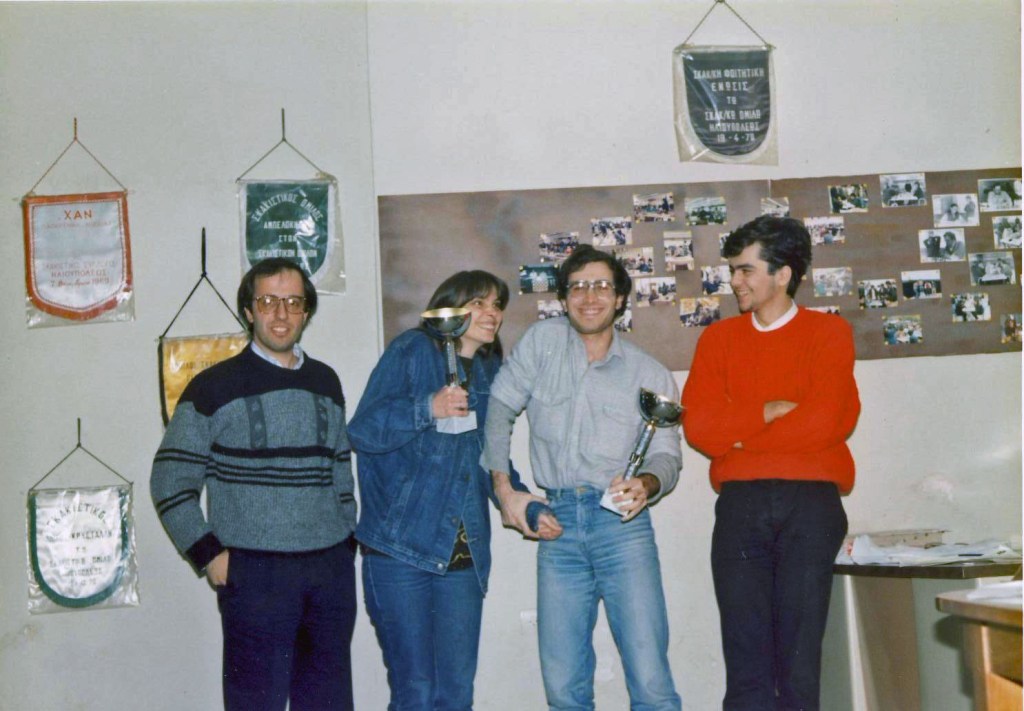 Μετά από κάποια απονομή στο τότε εντευκτήριο του συλλόγου. Από αριστερά Λουκάς Ζαχείλας, Μαρίνα Μακροπούλου, Ανδρέας Κοφίδης (ΣΟ Καλλιθέας) και Κώστας Καρανικόλας