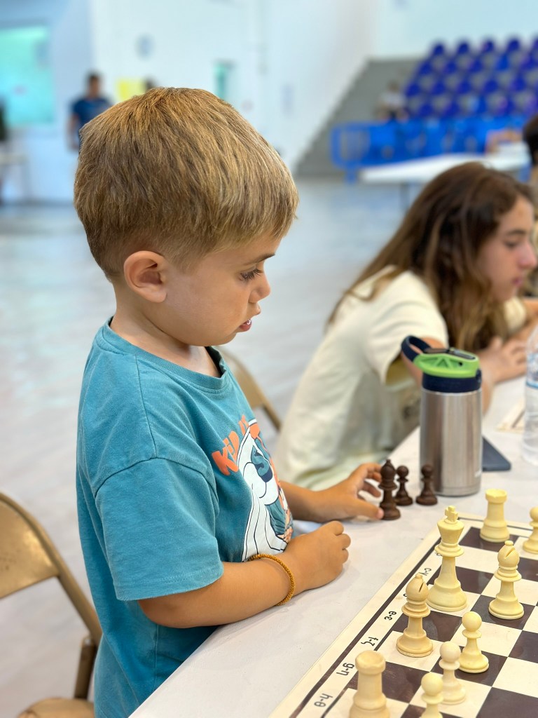 Ο μικρούλης Στέλιος Τσαντές σκέφτεται την κίνησή του. Κατά τη διάρκεια των αγώνων γιόρτασε τα 5α γενέθλιά του