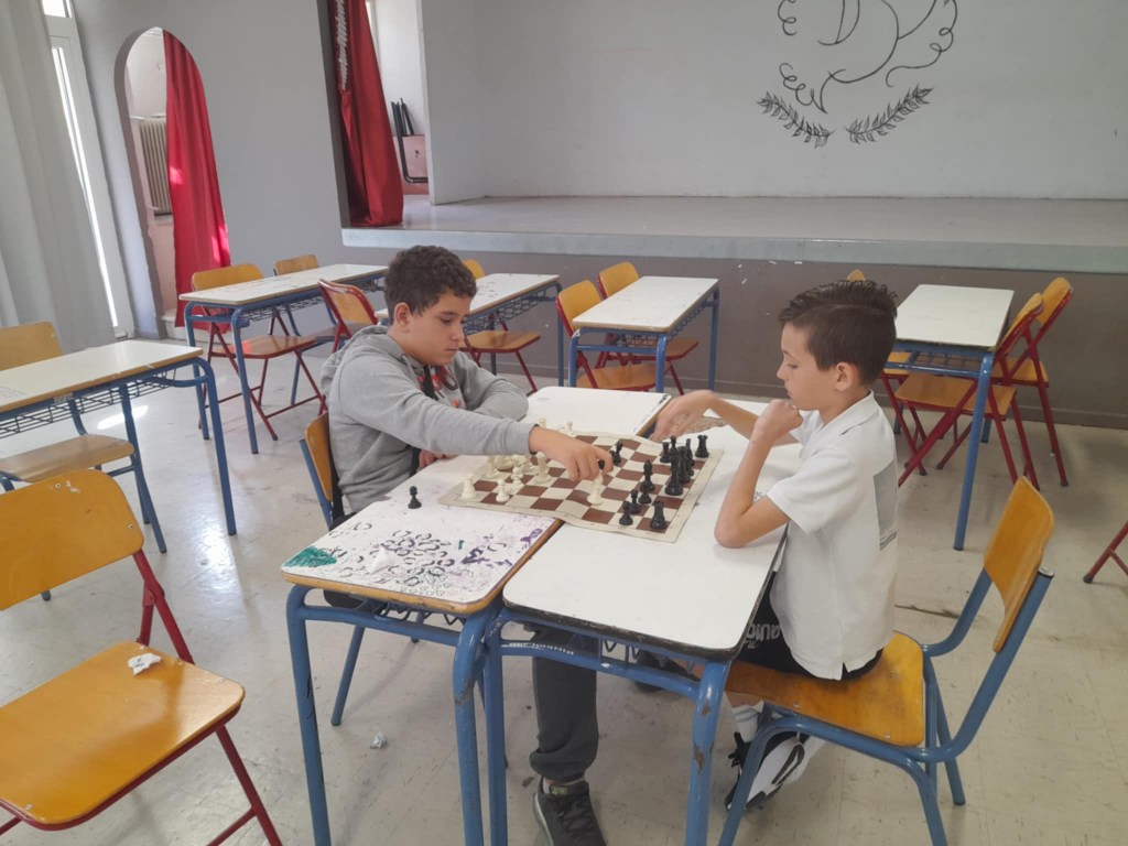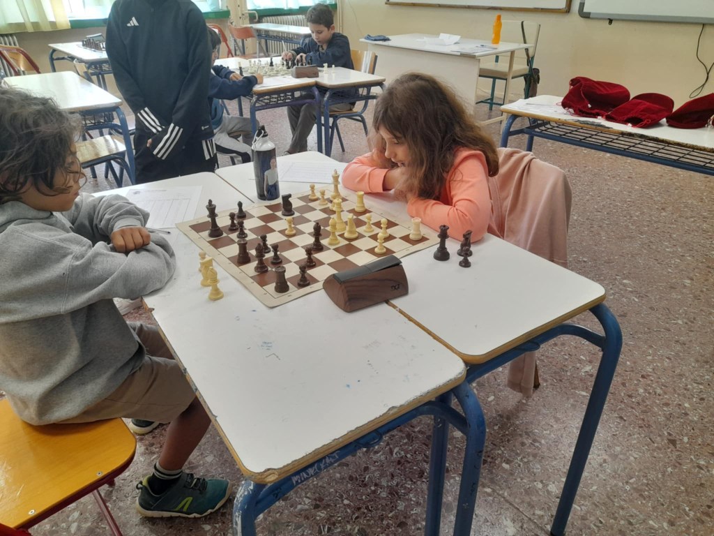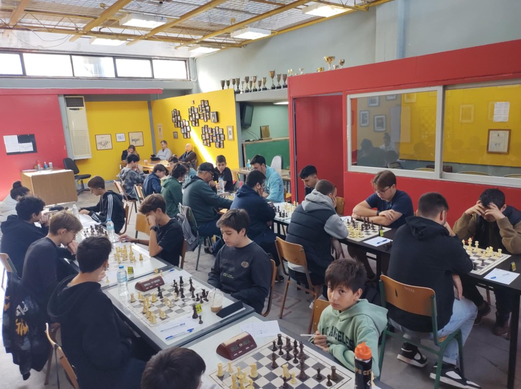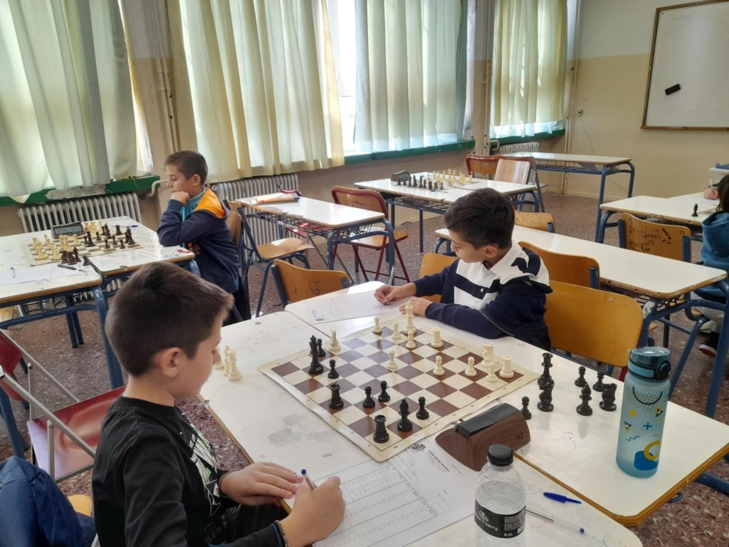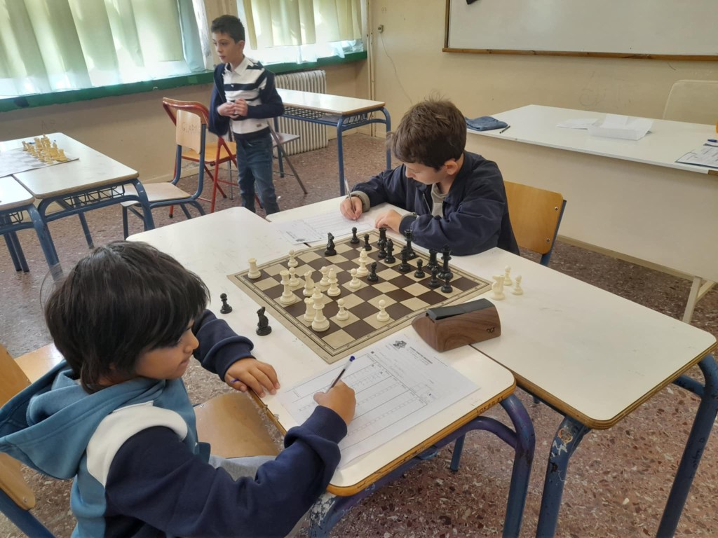 Με τα λευκά ο Αλέξανδρος Ρομπάνος γράφει την κίνηση που μόλις έχει παίξει ενώ δίπλα του ο Απόστολος Μέντζος, αρχηγός της ομάδας Κ12 σκέφτεται τη συνέχεια της παρτίδας του