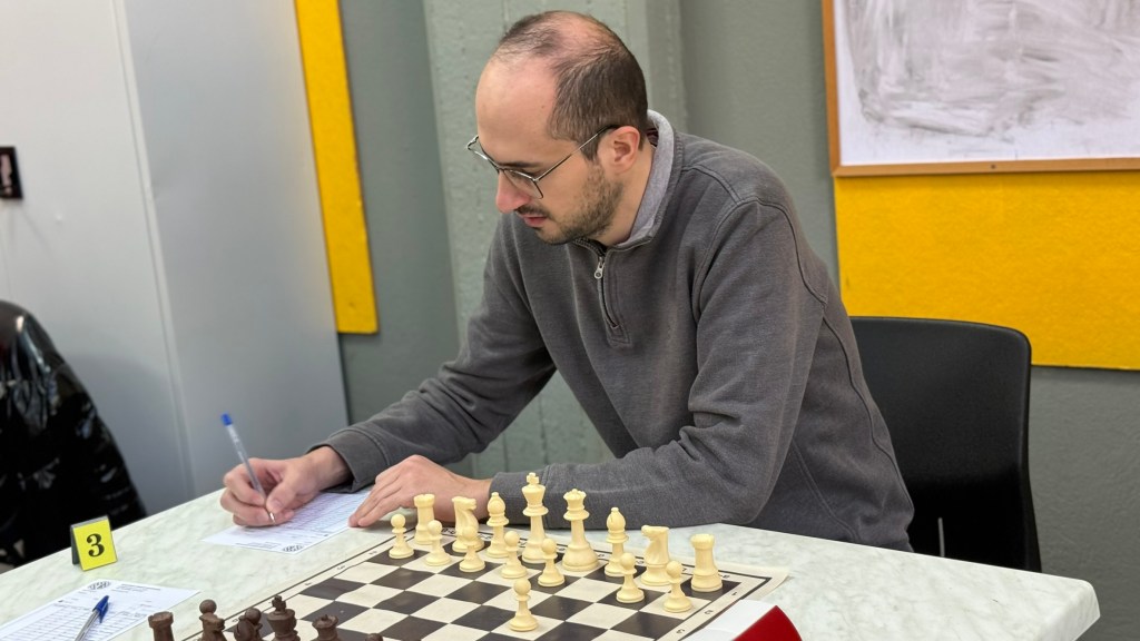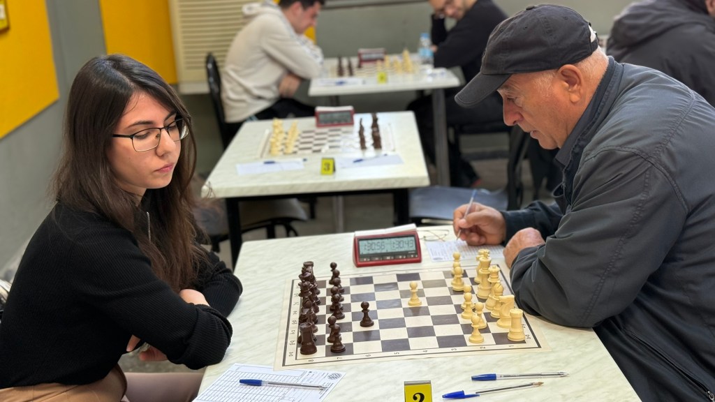 Τελική φάση της συνάντησης. Ο Μιχάλης Φλεριανός (δεξιά) είναι κοντά την ήττα ενώ δίπλα του η Ύρια Καμπίτση σκέφτεται στην παρτίδα που έκρινε τα μετάλλια