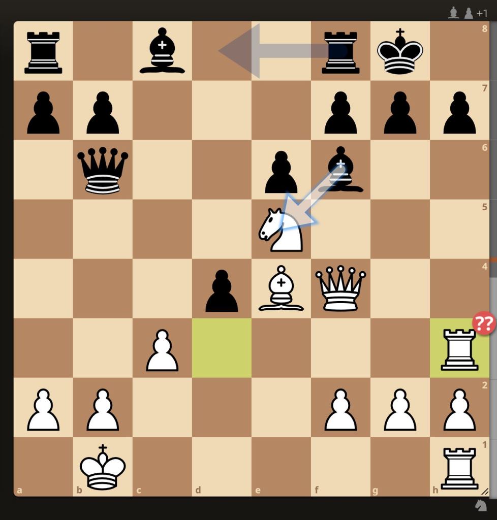 Τα μαύρα έπαιξαν 18…Αχε5?? και τα λευκά συνέχισαν με ένα πολύ γνωστό μοτίβο ματ. 19. Αχθ7+ Ρθ8, 20. Αη6+ Ρη8, 21. Πθ8+ και τα μαύρα εγκατέλειψαν αφού ακολουθεί 21… Ρχθ8 22. Βθ4+ Ρη8 23. Βθ7+