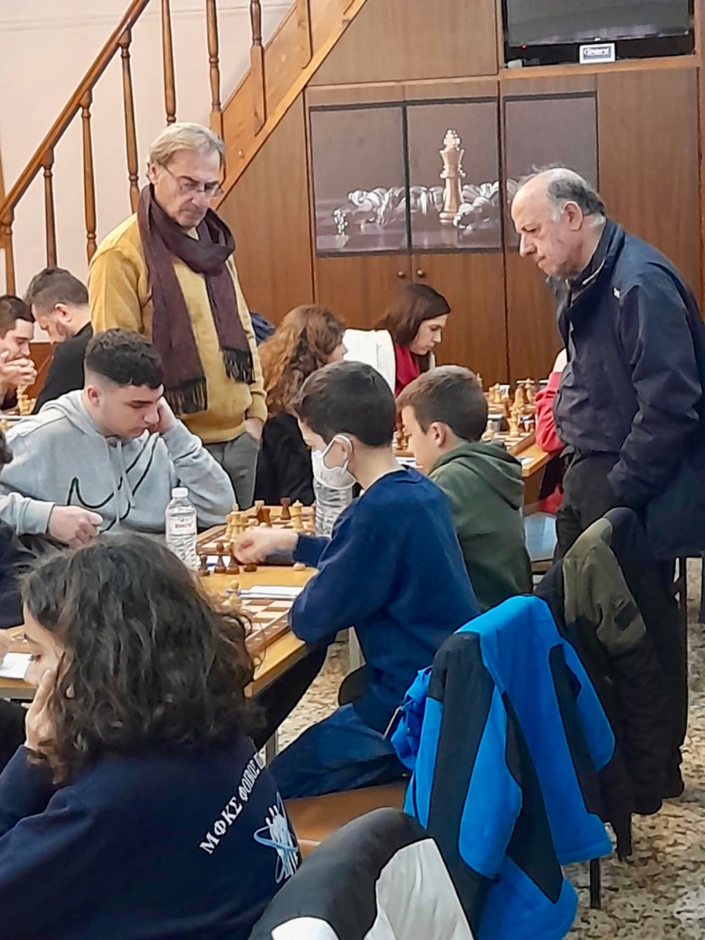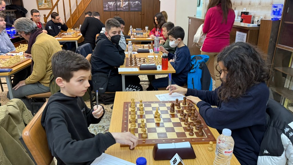 Σκληρές μάχες και στις νεανικές σκακιέρες. Σε πρώτο πλάνο ο Ιάσονας Μίχας αριστερά, ενώ στο βαθος με τη μάσκα είναι ο Φοίβος Καμπίτσης