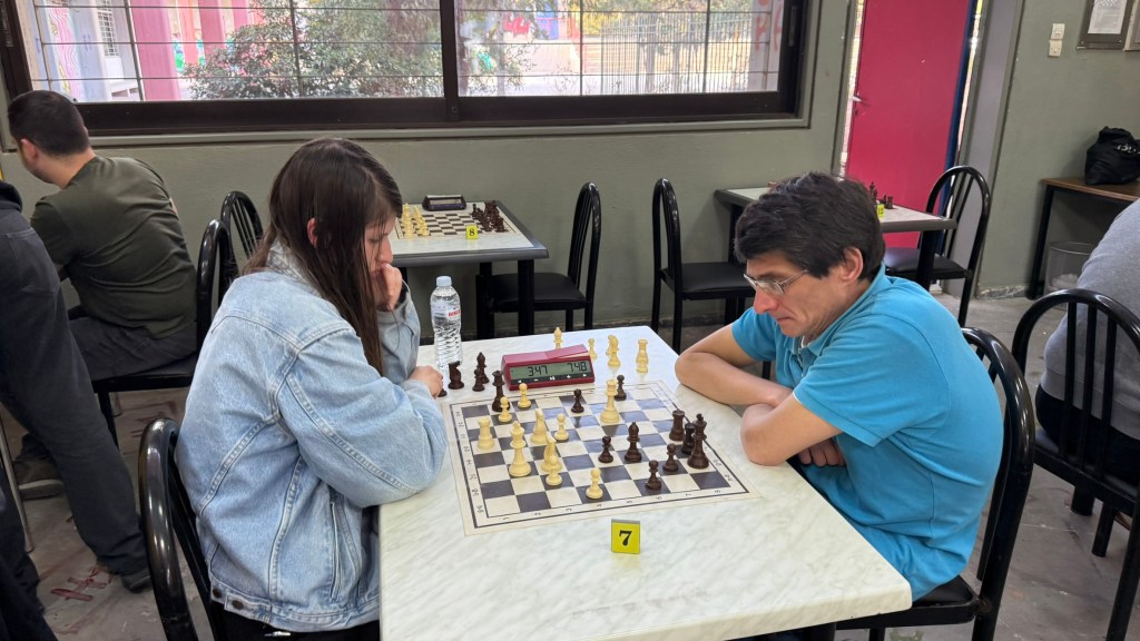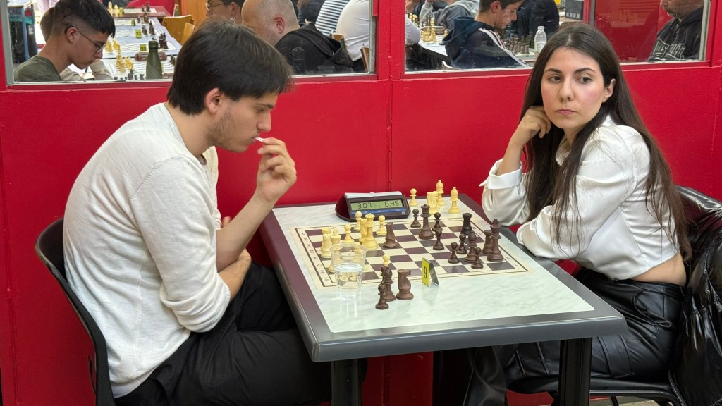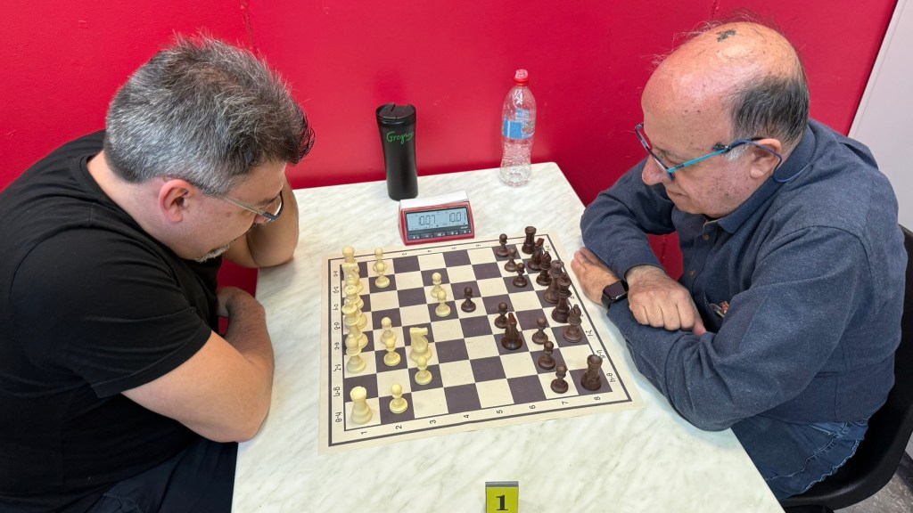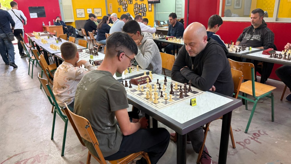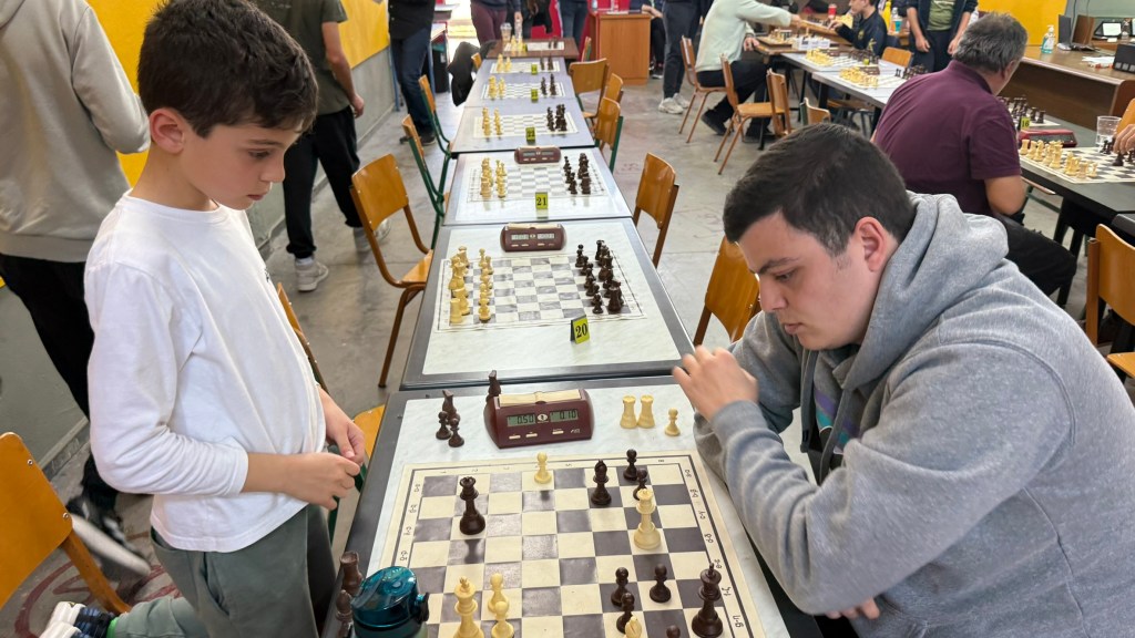 Ο Γιώργος Αγγελόπουλος (δεξιά) στην παρτίδα του με την Ιουλία Κανά. Ο Γιώργος υπήρξε ένα από τα μεγαλύτερα ταλέντα της Ηλιούπολης τη δεκαετία του ’90. Παραμένει ένας πολύ ισχυρός παίκτης
