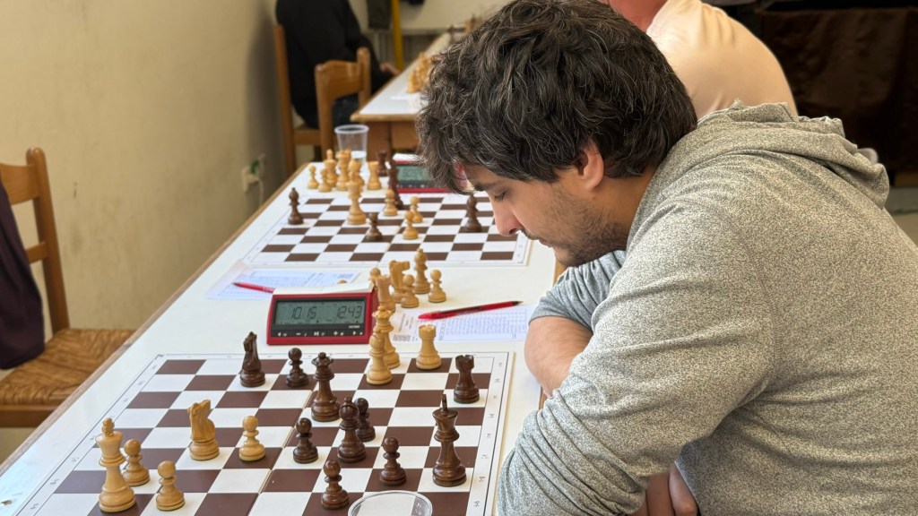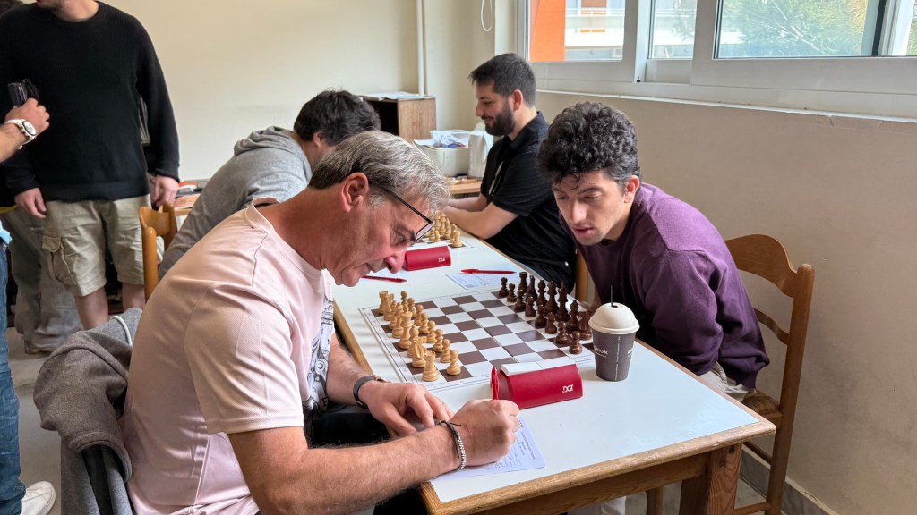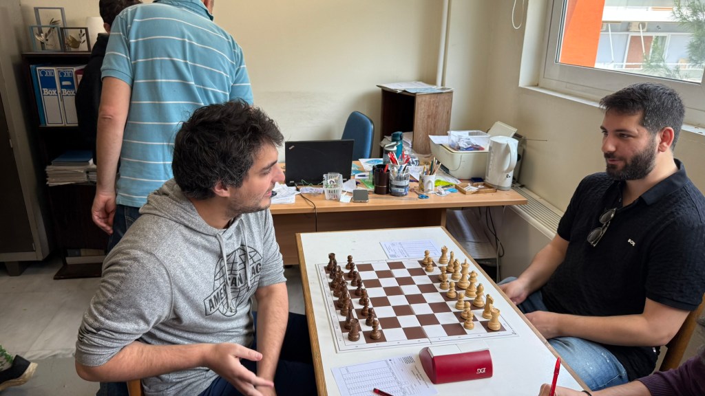 Ο Βασίλης Παπαγεωργίου (αριστερά) στη 2η σκακιέρα της ομάδας