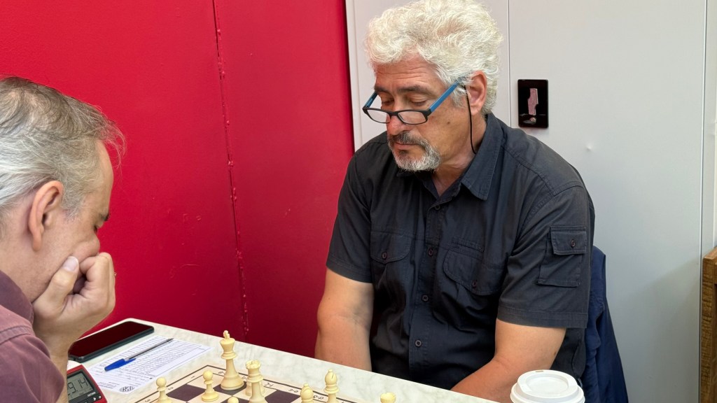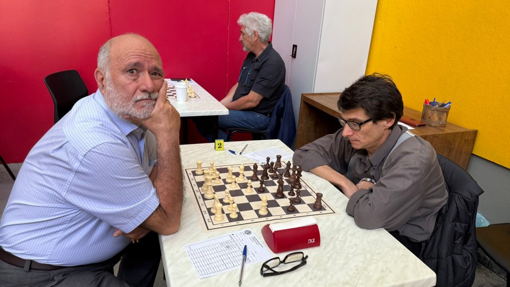Ο Στέλιος Τσεκούρας (δεξιά) στην παρτίδα του με τον Αντώνη Λειβαδάρο (ισοπαλία)