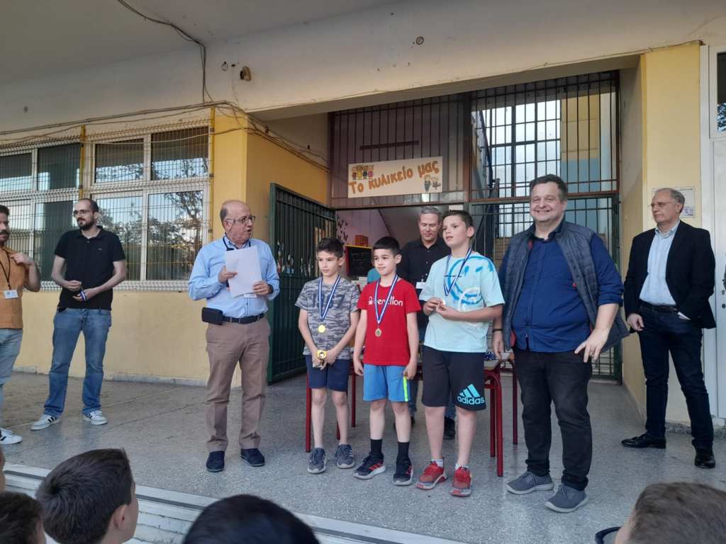 Τις απονομές στη Δ’ Δημοτικού έκανε ο πρώην Δήμαρχος Ηλιούπολης Γιώργος Χατζηδάκης που βοήθησε καθοριστικά και στη διάρκεια των αγώνων