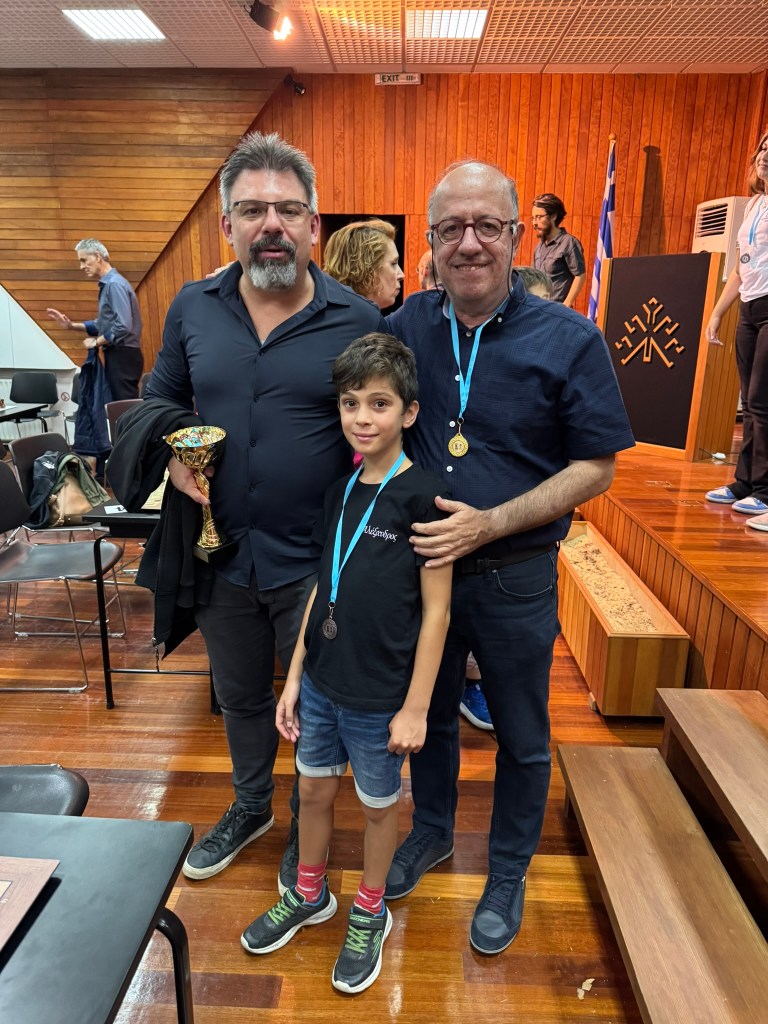 Σε μια φωτογραφία τρεις πρωταθλητές. Στέλιος Χαλκιάς (αριστερά), ο προπονητής μας, πρωταθλητής Ελλάδας στο μπλιτς, Λουκάς Ζαχείλας, πρωταθλητής S65 και ανάμεσα ο Αλέξανδρος Ρομπάνος 3ος στην Ελλάδα στο U10