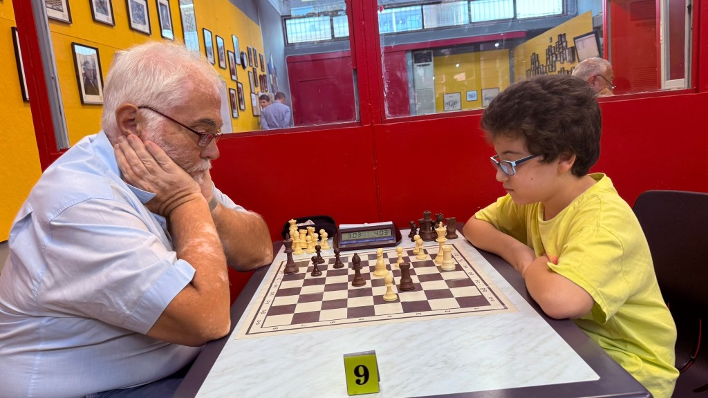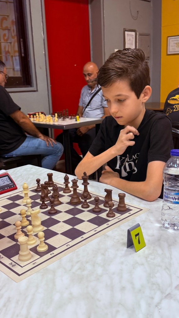 Το σκάκι είναι από τα ελάχιστα αθλήματα που η ηλικία δεν αποτελεί εμπόδιο. Αριστερά ο Στέλιος Τσεκούρας αντιμετωπίζει έναν πολύ νεαρό αντίπαλο