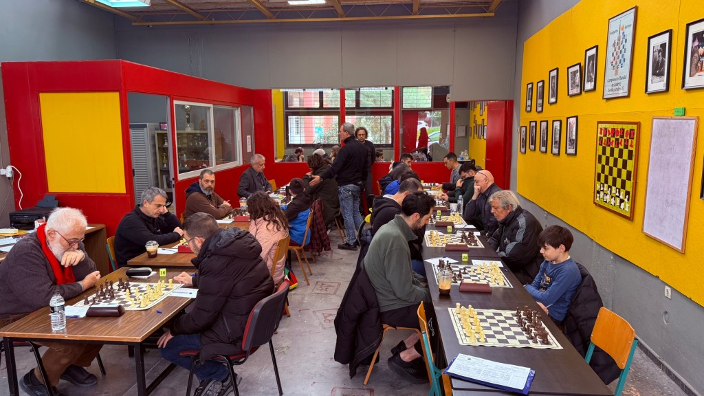 Ο Κώστας Ουζούνης αριστερά ενώ δίπλα του ετοιμάζεται για την 1η κίνηση ο Λεωνίδας Τσιρώνης που σημείωσε μια πολύ όμορφη νίκη