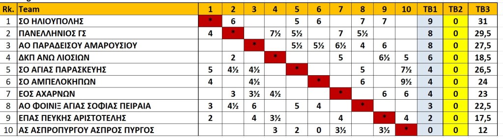 Τα αναλυτικά αποτελέσματα: 1) ΚΩΣΤΑΣ ΠΑΝΑΓΙΩΤΗΣ-ΜΠΟΒΙΑΤΣΗΣ ΧΑΡΑΛΑΜΠΟΣ=1-0, 2) ΤΣΑΓΚΑΡΟΠΟΥΛΟΣ ΣΠΥΡΙΔΩΝ-ΑΝΤΩΝΙΑΔΗΣ ΑΝΑΣΤΑΣΙΟΣ=0-1, 3) ΚΑΡΑΝΙΚΟΛΑΣ ΔΗΜΗΤΡΙΟΣ-ΣΟΥΚΑΡΙΕ ΖΩΡΖ=0-1, 4) ΠΑΠΑΓΕΩΡΓΙΟΥ ΒΑΣΙΛΕΙΟΣ-ΕΥΘΥΜΙΑΤΟΣ ΓΕΩΡΓΙΟΣ=1-0, 5) ΤΣΙΦΕΤΑΚΗΣ ΠΑΝΑΓΙΩΤΗΣ-ΕΛΕΥΘΕΡΙΟΥ ΓΕΩΡΓΙΟΣ=0-1, 6) ΑΝΑΣΤΑΣΟΠΟΥΛΟΥ ΑΝΔΡΙΑΝΝΑ-ΑΓΓΕΛΕΤΟΥ ΦΕΡΕΝΙΚΗ=1-0, 7) ΚΑΒΟΥΡΙΔΗ ΗΛΕΚΤΡΑ-ΝΤΑΛΑ ΑΝΤΙΓΟΝΗ=1-0 8) ΦΙΛΙΠΠΟΥ ΓΕΩΡΓΙΟΣ-ΔΕΜΕΣΤΙΧΑΣ ΠΕΤΡΟΣ=0-1, 9) ΜΙΧΑΣ ΙΑΣΟΝΑΣ-ΠΡΙΣΤΟΥΡΗΣ ΙΟΥΛΙΟΣ-ΣΤΑΥΡΟΣ=1-0, 10) ΡΟΜΠΑΝΟΣ ΑΛΕΞΑΝΔΡΟΣ-ΝΤΙΒΑΝΙΔΗΣ ΑΠΟΣΤΟΛΟΣ=1-0