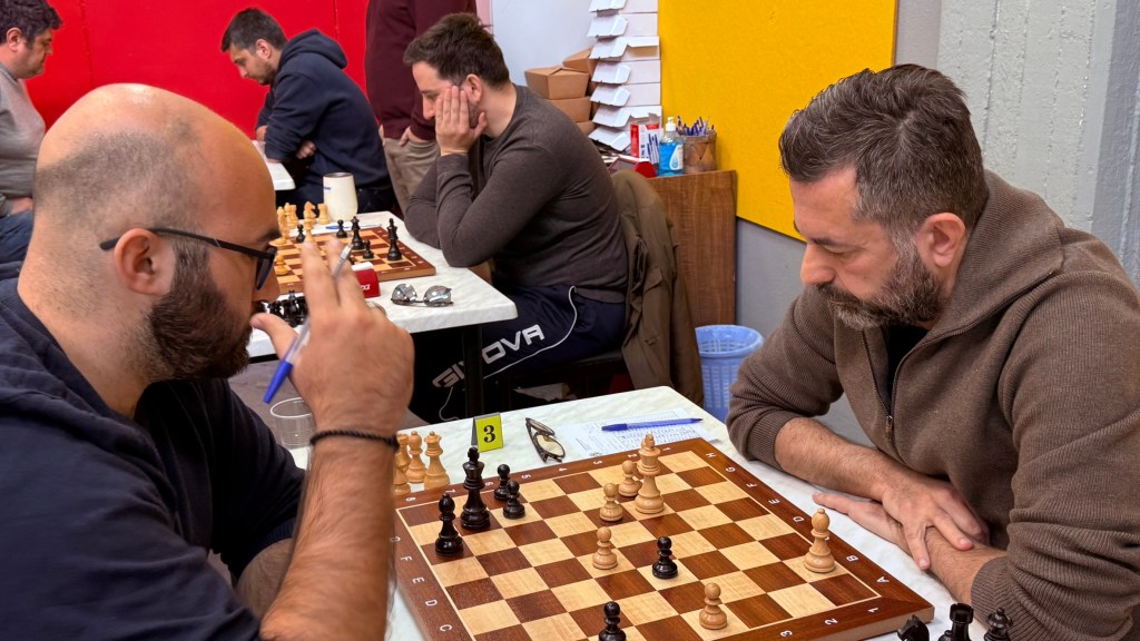 Η νικηφόρα παρτίδα του Δημήτρη Καρανικόλα (δεξιά) με τον Ισίδωρο Βάθη είναι ακόμα σε εξέλιξη σε ένα πολύ δύσκολο φινάλε