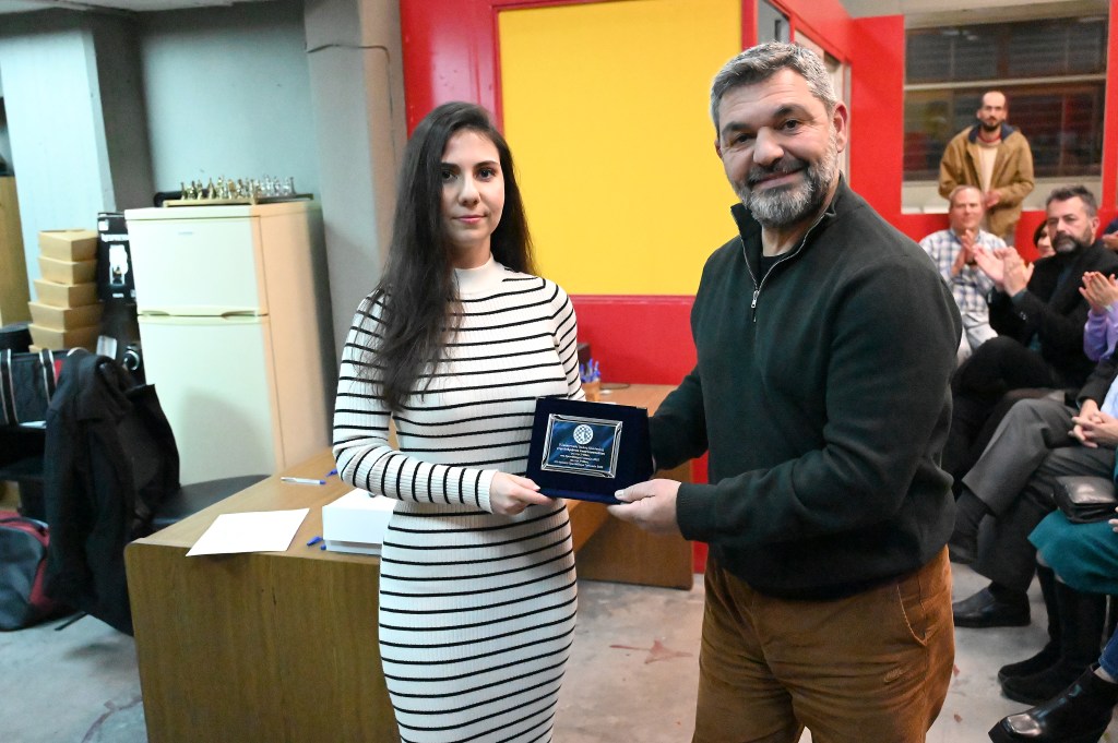 Η πρώτη κατηγορία βραβεύσεων αφορούσε τα εξαιρετικά ατομικά αποτελέσματα και συνεισφορά σε δράσεις του συλλόγου. Η Ανδριάννα Αναστασοπούλου είχε μια χρονιά που σίγουρα θα θυμάται. Την 3η θέση που κατέκτησε στο ανοιχτό πρωτάθλημα γυναικών που έγινε στη Θεσσαλονίκη, ακολούθησε μια πολύ μεγάλη διάκριση. Η 2η θέση στο πρωτάθλημα γυναικών που διεξήχθη στο Αίγιο στις αρχές Δεκεμβρίου 2025.