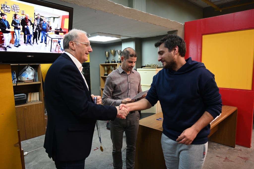 Από αριστερά ο Αντιδήμαρχος Αθλητισμού Γιάννης Γρηγορέας, ο Αντιπρόεδρος της FIDE Γιώργος Μακρόπουλος και ο Πρόεδρος του ΣΟΗ Λουκάς Ζαχείλας